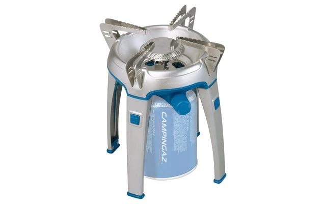 La nueva y robusta cocina Bivouac™ tiene un diseño futurista y un alto grado de estabilidad. Por lo tanto, es especialmente adecuado para los principiantes en el uso de cocinas de gas debido a su gran facilidad de uso. La olla es lo suficientemente grande como para que incluso las sartenes y ollas más grandes tengan una sujeción segura y estable. Sin embargo, tiene un tamaño compacto porque las patas se pueden quitar fácilmente para el transporte