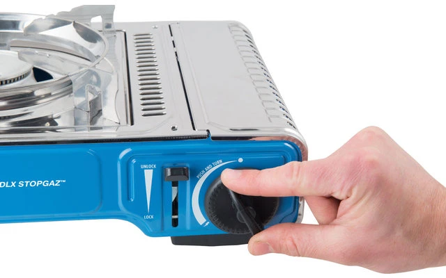 Para facilitar el transporte y el almacenamiento seguro, la cocina de gas de un quemador se suministra en un maletín de plástico