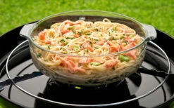 Esta innovación está lista para su uso inmediato y no necesita ser configurada. El tubo de combustión y los paneles radiantes se extienden automáticamente al separar la parrilla. Las rejillas de 2 zonas ajustables en altura para la carne y las verduras proporcionan una superficie de asado superior a la media. La temperatura óptima se alcanza tras sólo 2 minutos. Si es necesario, la unidad de combustión se puede retirar para asar con madera o carbón.