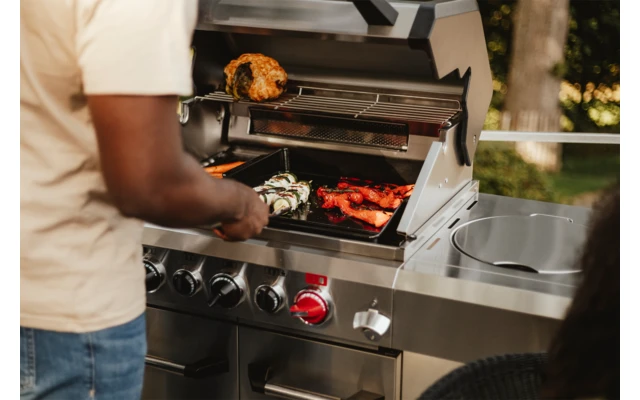 Con la Plancha, obtendrá un trozo de cocina mediterránea en su barbacoa Enders. La plancha con una enorme superficie de asado de hierro fundido esmaltado almacena y distribuye de forma óptima el calor de su barbacoa. Gracias a esta segunda característica, la plancha es ideal para un gran número de platos – desde pescado y verduras hasta hamburguesas, bacon, huevos fritos o tortitas. El práctico canal para la grasa mantiene limpia la plancha. Lo mismo ocurre con el borde comparativamente alto: hace que dar la vuelta a los alimentos sea muy fácil y nada se tuerza. Gracias a los pies ajustables, la placa grill se adapta a casi todas las parrillas Enders, con la que podrá elaborar platos que a partir de ahora parecerán españoles. ¿Y por qué? Porque saben a España