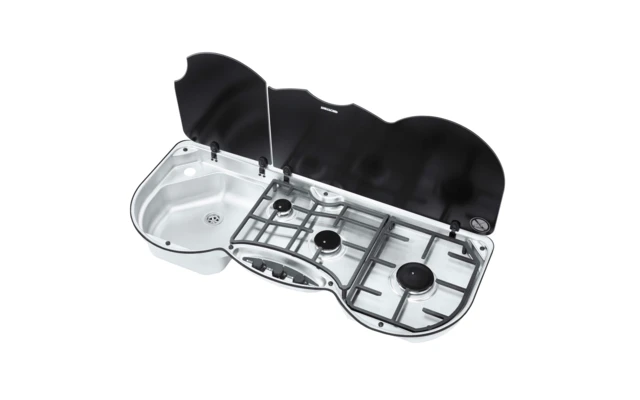 - Características: Combinación de placa de cocción y fregadero (160 mm de profundidad con desagüe Ø 35 mm)